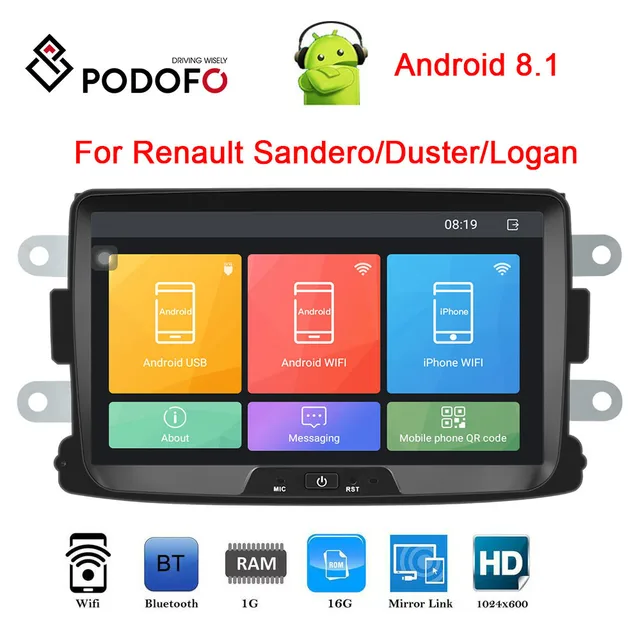 OVERVIEW Product Podofo 2 Din Car Multimedia MP5 Player 8 " Android Car Radio GPS MP5 MirrorLink Monitor For Renault